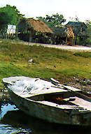 After awhile, we come to a small cluster of homes. Here we are to get off the boat, take a short bus ride to the New River, and then re-board